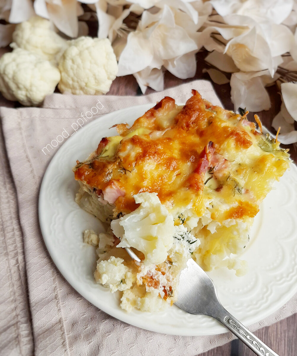 Запеканка из цветной капусты с ветчиной и сыром.