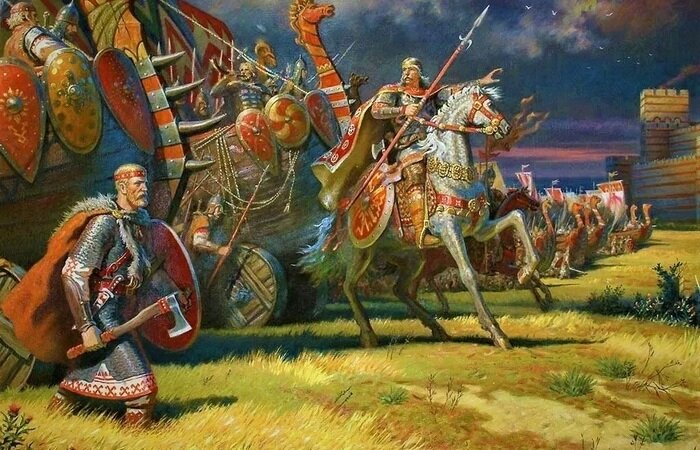 Как большинство других народов на земле, восточные славяне большую часть своей истории почти непрерывно воевали. Исключением не было и ранее Средневековье, период Древней Руси. При этом по мере становления первых славянских государств как интенсивность, так и масштаб вооруженных конфликтов непрерывно росли. Конечно, современному человеку всегда приятно думать, что его предки во все времена только оборонялись. Однако, это не так. При этом не стоит забывать, что данное правило справедливо для всех народов. Так с чем же выходили на бой пращуры от Новгорода до Полоцка и от Полоцка до Киева в период с IX по середину XIII века?
