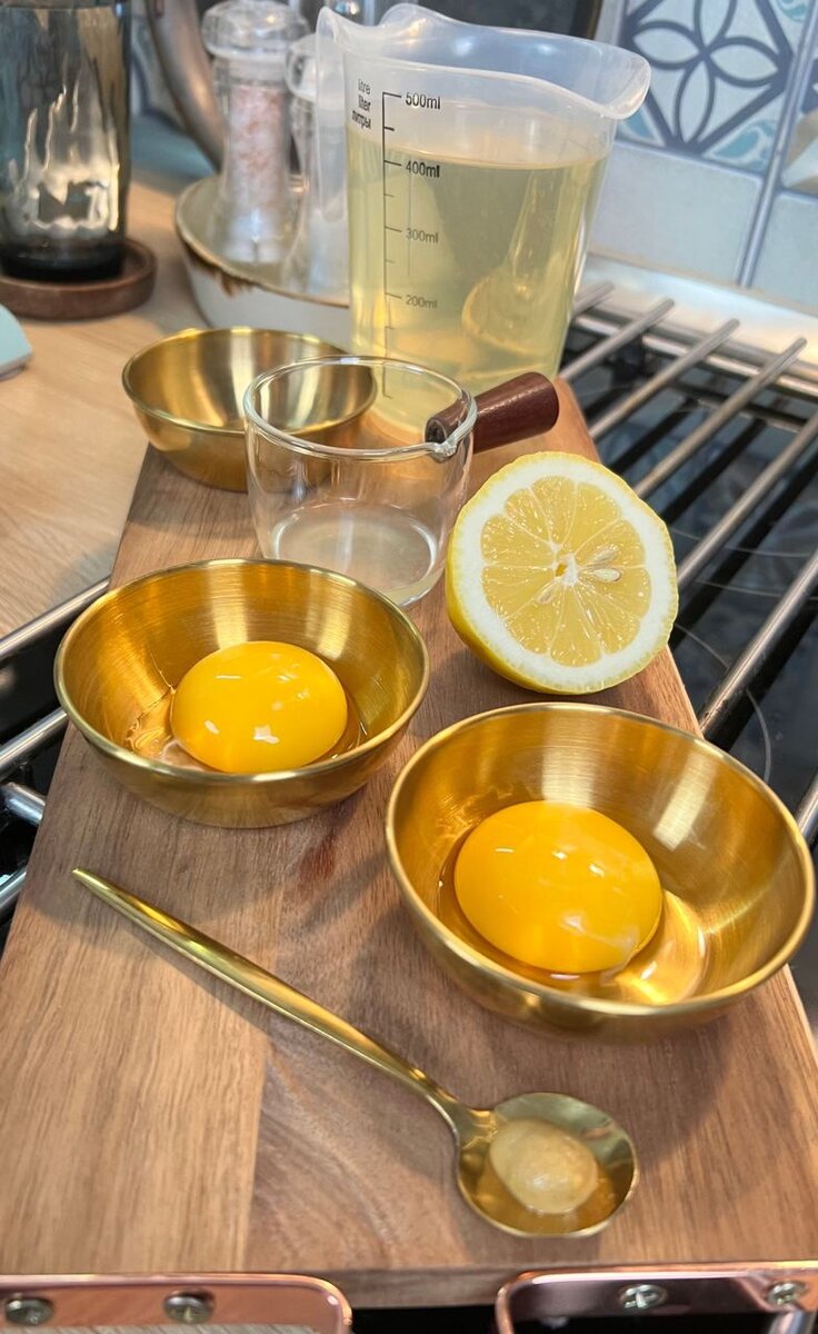 Простой, но вкусный домашний майонез — идеальное дополнение к любому блюду. Вам понадобится терпение и еще кое что: 1/2 ч.л горчицы 1 ст.л лимонного фреша 2 желтка 1/2 ч.л соли 470 мл растительного или оливкового масла (рафинированного) Процесс приготовления: 2. По 1/2 чайной ложке (медленно и аккуратно, буквально по капле) ввести 250 мл масла, «вбивая» его на высокой скорости. 3. После добавления каждой 1/2 чайной ложки масла обязательно дожидаться пока оно «вобьется» в массу и только после этого добавлять новую порцию. С каждой порцией масла плотность массы будет увеличиваться. 4. В массу аккуратно влить лимонный фреш, продолжая взбивать миксером. Масса посветлеет и станет более кремовой. 5. По аналогу с пунктом 2 — «вбить» оставшееся масло. Полезный совет: регулировать плотность массы майонеза и его текстуру просто — добавьте несколько капель воды и масса станет кремовой и мягкой. Нужно снова увеличить плотность массы, чтобы на ложке стояла — «вбейте» несколько капель масла. Как все