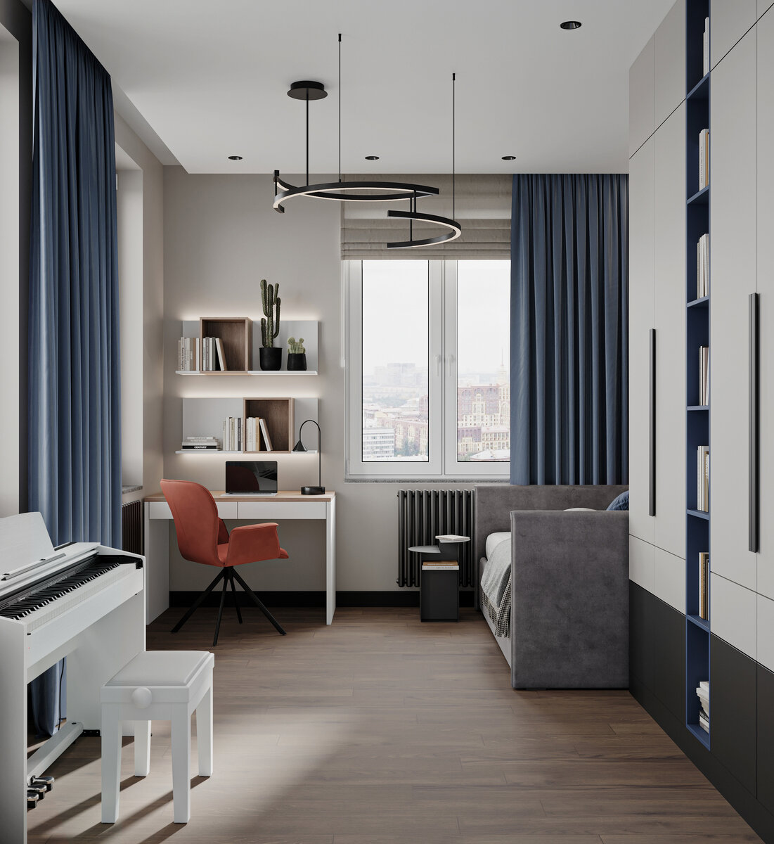 Дизайн детских комнат – это важный аспект при создании уютного, функционального и безопасного пространства для детей. Он должен отражать интересы и индивидуальность ребенка, а также способствовать его развитию и творческому потенциалу. Цвет в детской комнате может оказывать влияние на настроение и эмоциональное состояние ребенка. Яркие и насыщенные цвета могут стимулировать активность и энергичность, а спокойные и нежные цвета – успокаивать и создавать атмосферу уюта и комфорта. Количество цвета так же играет роль, может быть нейтральные стены, но добавлены цветовые акценты (мебель, текстиль или декор). А может быть одна акцентная стена, ее лучше уравновесить сдержанным цветом мебели и текстиля. Влияние цветов голубой цвет может помочь расслабиться и успокоиться, зеленый – создать ощущение свежести и гармонии, а красный – стимулировать активность и энергию. Влияние цветов голубой цвет может помочь расслабиться и успокоиться, зеленый – создать ощущение свежести и гармонии, а крас