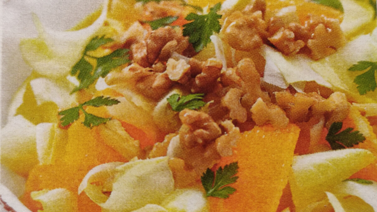 Салаты - это основной источник витаминов и минералов, необходимых организмов в любое время года. Лёгкие овощные салаты незаменимы для желающих сохранить фигуру стройной. Салат как закуска должен возбудить аппетит и поэтому в него включают самые лучшие, самые привлекательные продукты. В салатах могут быть использованы почти все известные пищевые продукты и их самые смелые сочетания. Однако эти сочетания должны быть совместимы во вкусовом отношении. Весной хочется чего-то лёгкого и необычного. Давайте начнём. Салат с цикорием Ингредиенты: · Салатный цикорий - 4 штуки · Крупный апельсин - 2 штуки · Сок апельсина или грейпфрута - 2-3 столовые ложки · Жидкий мёд - 1 столовая ложка · Бальзамический уксус белый - 3 столовые ложки · Соль, молотый чёрный перец - по вкусу · Оливковое масло- 4 столовые ложки · Грецкие орехи - 3 штуки · Петрушка - 1/3 пучка Приготовление: Цикорий ополоснуть, разобрать на листья и, срезав с них утолщение, крупно нарезать. Апельсины очистить, мякоть