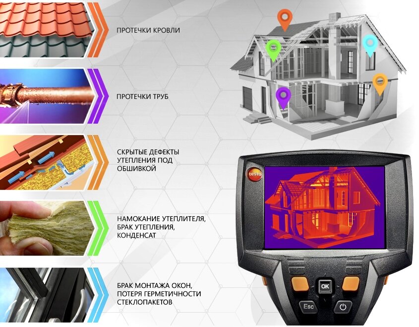 Давайте сегодня поговорим о тепловизионной съемке, что это такое и для чего она нужна. Телевизионная съемка нужна для того, что бы найти мостики холода и утечки тепла с помощью тепловизора. Мостики холода показывают нам места утечек тепла, обычно это оконные и дверные проемы (не правильный монтаж), межвенцовые швы в срубах (плохая конопатка), соединения строительных плит (не произведена правильная герметизация швов), не правильное обустройство утепления кровли, плохое утепление фасада. И все это можно обнаружить с помощью тепловизора! Тепловизионную съемку лучше всего делать на этапе строительства или ремонта, когда чистовая отделка еще не сделана, и есть возможность произвести перегерметизацию нагруженных мест. Если такой возможности нет, и ремонт уже сделан, тогда предется произвести очистку проверяемых мест (убрать мебель в сторону, снять со стен картины и все что может помешать). При проведение съемки контролируется дополнительно температура и влажность воздуха внутри и снаружи по