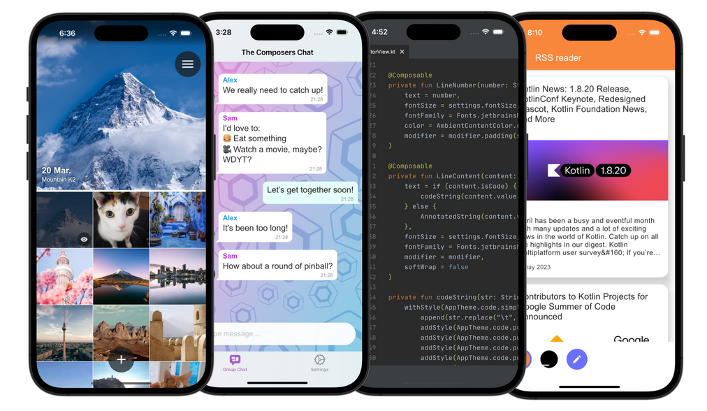 В мае 2023 года компания JetBrains, создатель языка Kotlin, представила альфа-версию своего фреймворка Compose Multiplatform, предназначенного для разработки кроссплатформенных пользовательских интерфейсов на Kotlin.