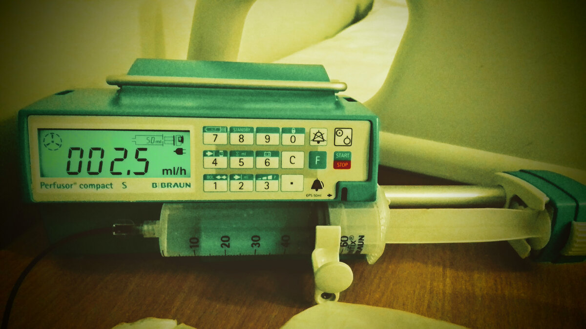 В моём случае после вписки и приёма у доктора я получал капельницу из пяти бутылок примерно на 4 часа, а затем - дозатор ("балалайку", как на первом фото) или "торпеду" - одноразовую механическую помпу с фторурацилом, которая капает в вену вещество 48-50 часов. И так - 4 курса с интервалом 2 недели.