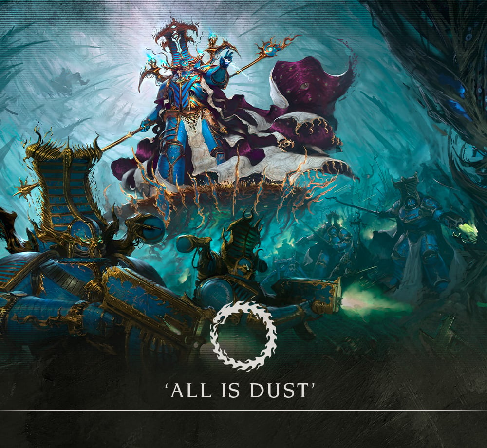 Колдуны Тысячи Сынов утверждают, что владеют сверхъестественными силами и запретными знаниями. Они обращаются к варпу — бурлящему межпространственному океану психической энергии, лежащей в основе реальности, — чтобы наметить ход судьбы, изменить ход времени и испепелить любое сопротивление вспышками сверкающего варп-огня.
