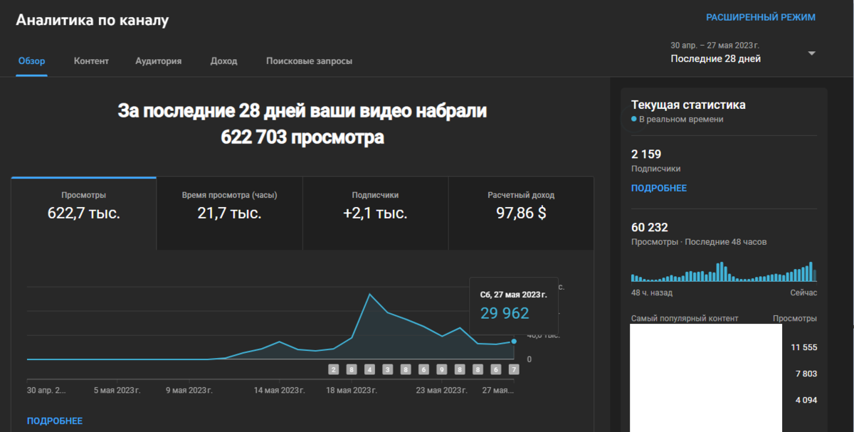 И вот банальный пример 👆👆👆, как мне удаётся возрождать новый канал, которому 4 дня назад дали монетизацию. Есть 3 популярных метода, которые в моём случае сработали. Точнее у меня сработало 2 метода, до третьего так и не дошло, потому что канал вроде как ожил.