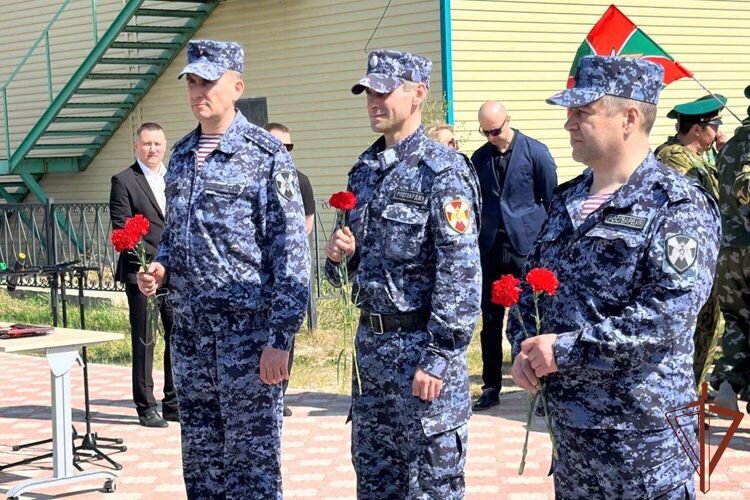 В завершение праздничных мероприятий представители Росгвардии помянули защитников рубежей Родины. Стражи правопорядка возложили цветы к Памятному знаку, установленному к 100-летнему юбилею Пограничной службы России и почтил память погибших при исполнении служебного долга минутой молчания.
