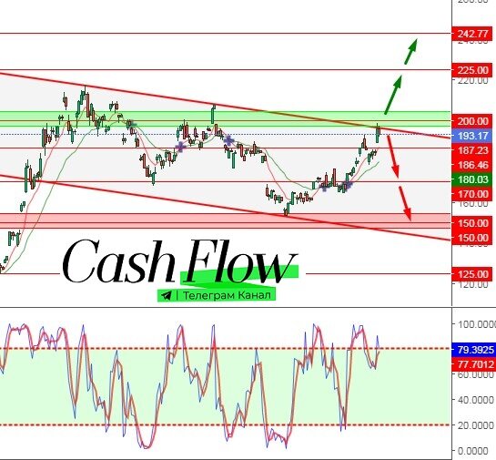 Немецкие власти считают, что существует утечка более 100 гигабайт конфиденциальных данных компании Tesla. Суть претензии заключается в том, что Американский производитель электромобилей не смог должным образом защитить данные клиентов, сотрудников и деловых партнеров. Об этом надзорный орган по защите данных в Нидерландах, где расположена европейская штаб-квартира компании Tesla, был проинформирован об этом случае. На что официальные представители Tesla подала предварительный отчет властям Нидерландов по этому вопросу. Акции компании торгуются в рамках восходящего импульса в границах долгосрочного нисходящего канала. Котировки вплотную подошли к ключевому уровню сопротивлению 200 $ за бумагу. Данный уровень является точкой пересечения уровня сопротивления и трендовой линией нисходящего канала, что является сильным техническим значением для определения инвестиционной активности в ближайшей перспективе. BONUS 100 $