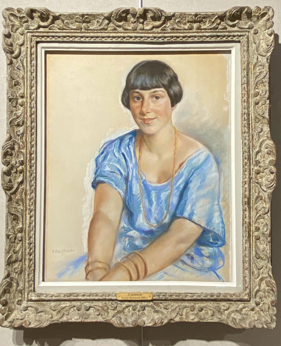 Для меня штрихами узнавания личности в портрете являются прежде всего характерная прическа пажа, простое платье голубого цвета, античного рубашечного покроя. И браслеты. Их несколько, на обеих руках. Они были серебряные, довольно массивные, и Марина Ивановна никогда их не снимала... Об этом есть воспоминания современников, в частности, А. Тарковского.