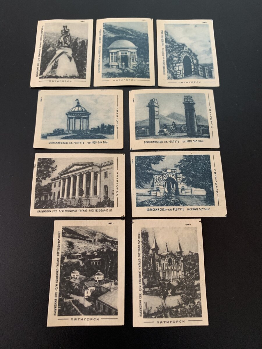 Здравствуйте, товарищи! Хочу представить вам некоторые серии спичечных этикеток родом из моей Родины - СССР. Кратко проследить историю государства, с любовью перенесённую художниками на спичечные этикетки. Пятая подборка, красивейший город-курорт Пятигорск. Производство Калужской спичечной фабрики "Гигант" и Брянской фабрики "Ревпуть". Пятигорск является самым крупным и посещаемым бальнеологическим курортом в регионе Кавказских Минеральных Вод и вторым в Ставропольском крае городе по численности населения, после Ставрополя. Пятигорск, как и все города региона Минвод, своим возникновением, развитием и мировой известностью обязан целебным минеральным источникам, функционирующим в данной местности. А началось все со времен Екатерины, в 1774 году, когда закончилась очередная русско-турецкая война. Становлению Пятигорска, как курорта, в разное время очень содействовали генерал А.П. Ермолов, генерал Г.А. Эммануэль и граф М.С. Воронцов. Хорошая погода, красивые ландшафты гор и равнин, бога