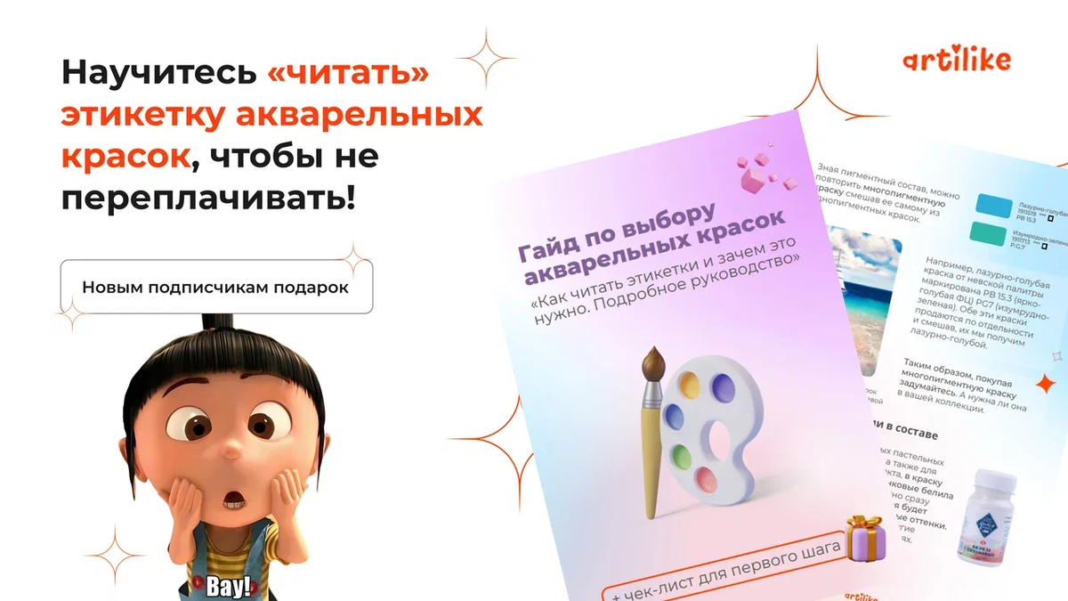 Поэтому подготовили гайд по выбору акварельных красок «Как читать этикетки и зачем это нужно. Подробное руководство». На 18 страницах вы найдете много полезной информации, которая станет вашим верным путеводителем по полкам с акварельными красками 😍