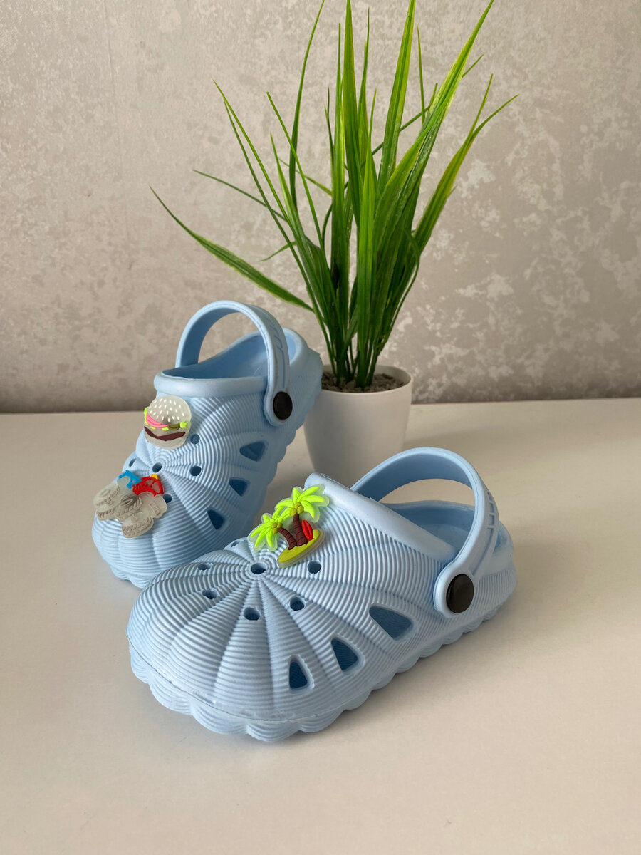 Очередная покупка с Wildberries-это летние детские сабо! Данные кроксы имеют ряд преимуществ: • закрытый носок позволяет уберечь пальчики ребенка от травм; • задний ремешок отлично фиксирует сандалии на ножке; • невероятно легкие; • легкие в уходе и быстро сохнут; • в подарок приходят джибитсы,которые светятся в темноте; • большой выбор цветов и размеров; • привлекательная цена. Отличный вариант для летних прогулок или походов на пляж! Артикул 110867523
