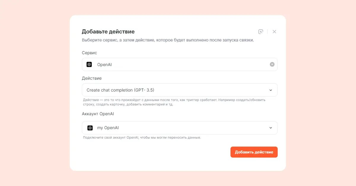 2. Через сторонние сервисы. Мне подходит лишь 2 ой вариант, т.к. Phyton не по мне и я посмотрел разные сервисы и выбрал Albato который позволяет автоматизировать работу с другими сервисами без необходимости писать код, предоставляя автоматические ответы и решения задач. Это не реклама, если что. Поэтому ссылку на них давать не буду) Как интегрировать ChatGPT Для интеграций ChatGPT в Albato необходимо добави