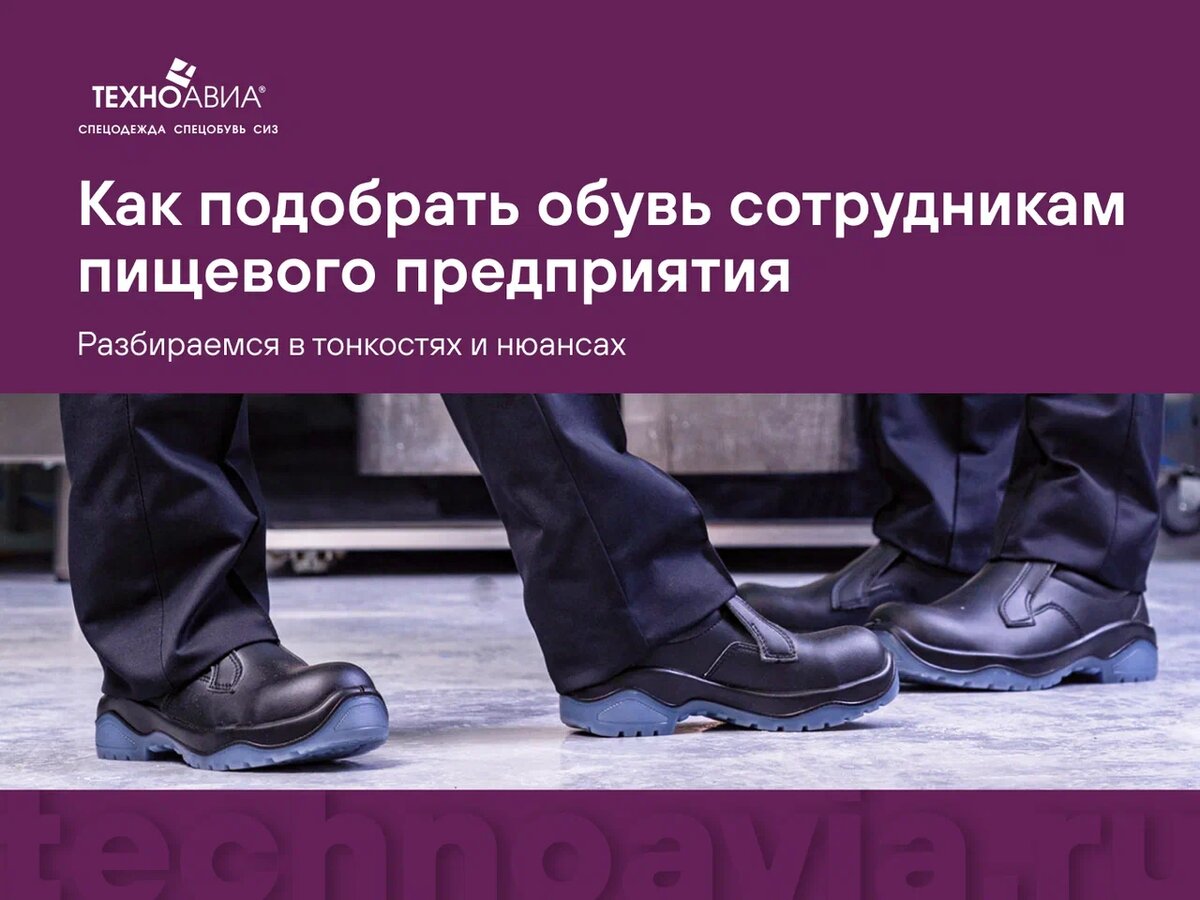 Приобретайте профессиональную обувь у проверенных производителей, которые смогут обеспечить стабильно высокое качество, индивидуальный подход к клиенту и своевременность поставок. Одним из лидеров российского рынка производителей спецобуви и спецодежды является компания «Техноавиа». В ее ассортименте большое разнообразие моделей, подходящих под условия различных типов пищевых предприятий. Специалисты компании всегда помогут подобрать обувь, исходя из особенностей вашего производства.