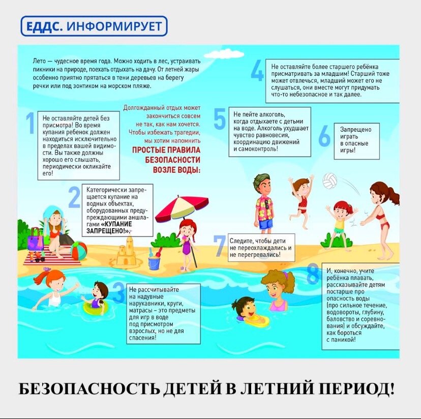 Безопасность детей в летний период — общие правила. Краткая инструкция по базовым правилам безопасности летом: 🌊 Купание: Купаться можно только в обустроенных для купания местах, нельзя заплывать далеко и играть в небезопасные игры. ☀️ Солнце: Носить головной убор днём нужно всегда — не только в солнечные дни, но и когда на небе тучи. Нельзя находиться под прямыми лучами солнца слишком долго. 🍩🍭🥑🍓🍒🚰 Еда и вода: Необходимо тщательно проверять срок годности продуктов, не брать на природу скоропортящуюся еду, стараться пить побольше чистой несладкой воды и всегда мыть руки перед едой. 🐛🕷️🐝 Насекомые: Если рядом оказалось потенциально опасное насекомое (пчела, оса) — нужно избегать резких движений. 🗣️ Общение: Если ребёнок гуляет без родителей — общаться можно только с хорошо знакомыми людьми. Нельзя звать на помощь в шутку. Переживаете за своего ребёнка, когда он гуляет без вашего сопровождения? Будьте уверены, что он в безопасности, и ему ничего не угрожает. #безопасностьде
