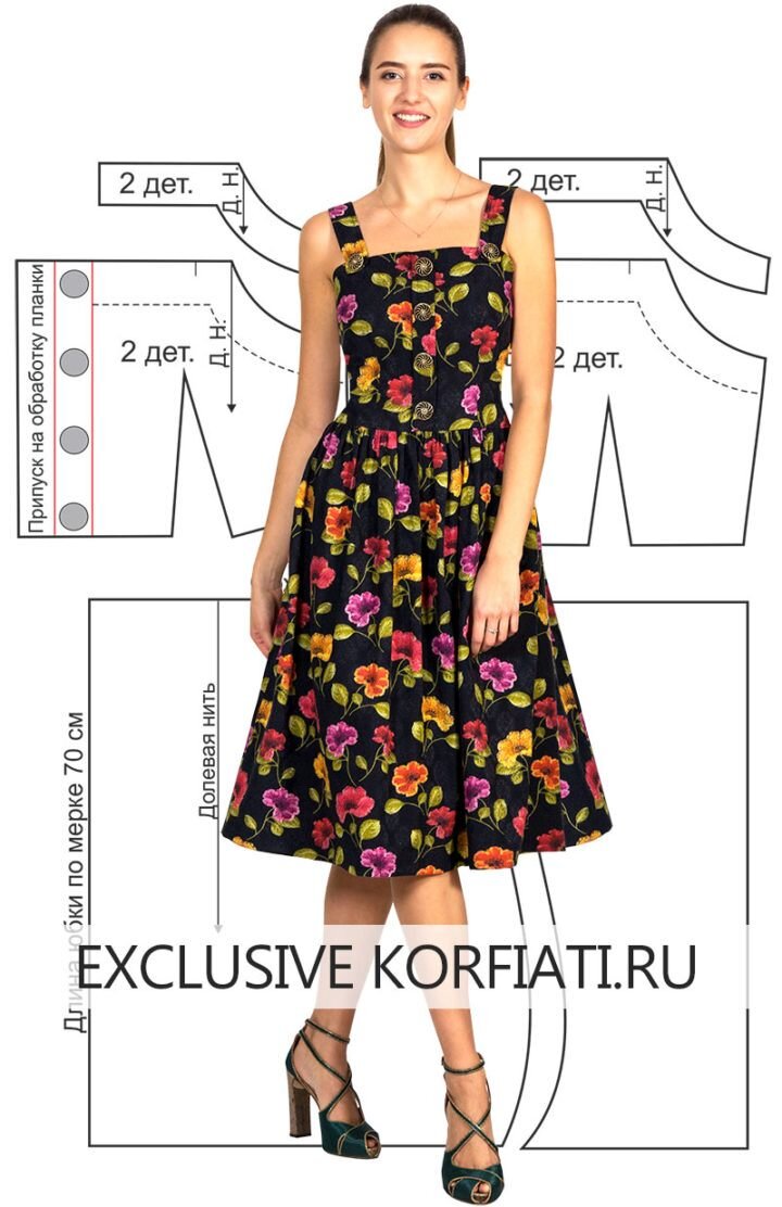 Этот очаровательный сарафан на бретелях создан для настоящих леди. В модели очень лаконично сочетаются приталенный крой лифа, широкие бретели и пышная юбка, формой напоминающая колокольчик. Крупные металлические пуговицы прекрасно оттеняют насыщенный принт ткани, расставляя правильные акценты в нужных точках. Выкройка сарафана с пышной юбкой — в этом уроке.