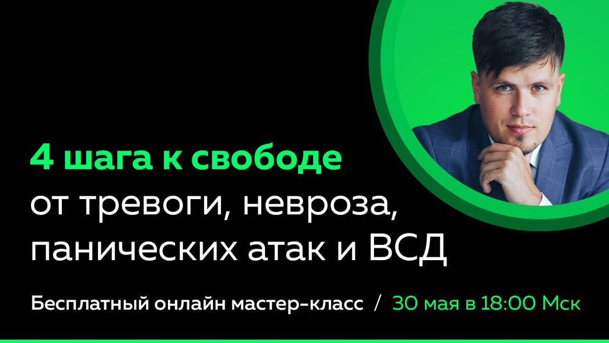 Хочу в прямом эфире помочь вам разобраться с тем, как решить свои психологические проблемы. 🗓 Он состоится уже завтра, 30 мая в 18:00 Мск Участие БЕСПЛАТНОЕ! Обязательно приходите, если хотите для себя получить конкретный пошаговый план по избавлению от: 🔻 повышенной тревоги и беспокойства 🔻 постоянного стресса и напряжения 🔻 панических атак / панического расстройства 🔻 агорафобии (страх открытых пространств) 🔻 обсессивно-компульсивного расстройства (ОКР) 🔻 навязчивых мыслей и страхов 🔻 вегетососудистой дистонии (ВСД) 🔻 ипохондрии (страхов за здоровье) 🔻 кардиофобии (страхов за сердце) 🔻 других фобий и неврозов Вы узнаете, какие 4 этапа необходимо пройти, чтобы выйти из невроза и вернуть себя к полноценной жизни без тревоги и страхов. Все разжую и расскажу простым и понятным языком! 🔗 Обязательно пройдите регистрацию на мастер-класс здесь: НАЖМИТЕ ТУТ До скорой встречи!