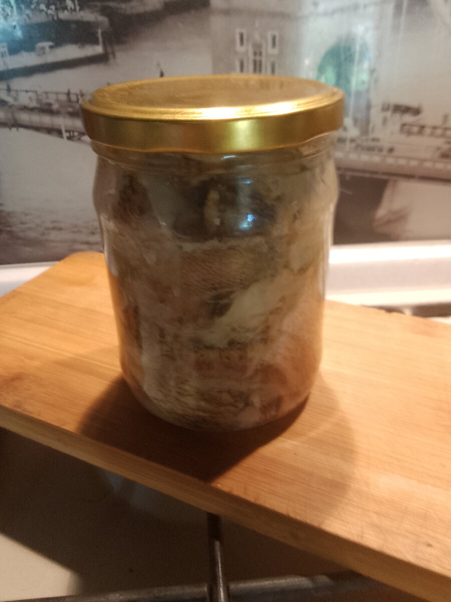 Каждую весну мой муж занимается рыбалкой. В основном попадаются подлещики и щуки. Пока идет рыба, он ловит каждый день, приносит по нескольку штук, сразу чистит и я замораживаю. Раньше мы убирали рыбу в морозильный ларь и потом всю зиму ее ели, размораживали и жарили. Но места занимает много и я стала ее консервировать. Набрала целое ведро замороженной рыбы, подождала немного пока она оттает и можно будет резать на куски. Плавники и хвосты отрезаю, они потом пойдут в куриный корм, рыбу режу на части, солю и укладываю в банки по 0,5 л. Укладывать надо плотно, приминать кусочки, хорошо добавить подсолнечного масла примерно треть банки, можно и больше. Если просто одну рыбу укладывать, то она сухая получается. Банки закрываю новыми крышками и ставлю в скороварку. У меня помещается 4 банки. С момента когда пойдет пар готовить примерно час и оставить пока не остынет кастрюля. За это время рыба будет готова и косточки будут мягкие. Такие консервы храню в погребе или просто в прохладном мест