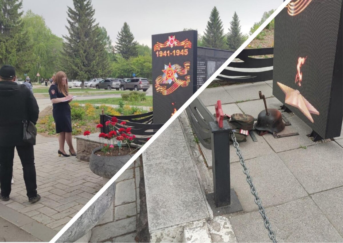 Необычную инсталляцию изучают под Новосибирском полицейские: в рабочем посёлке Краснообск мужчина в военной форме оставил на Монументе Славы свой китель с наградами и фашистскую каску. Композицию с фашистской каской, в которую воткнут красноармейский штык, а рядом лежал военный китель с наградами, сегодня, 29 мая, обнаружил в рабочем посёлке Краснообск блогер Валерий Котельников. «Шёл мимо и замечаю скопление полиции у поселкового монумента. Неужели вандализм? – удивился сначала общественник. – Подхожу, спрашиваю: «что случилось?» Выяснилось, что мужчина это оставил здесь. Полиция тщательно осмотрела и зафиксировала в протоколе появление данного арт-объекта». Валерий Котельников также раздобыл видео с камер наблюдений на Монументе Славы, а кадры разместил в паблике «Сибирский наблюдатель». На 14-секундном ролике видно, что мужчина пришёл к зелёной сумкой, сначала положил на монумент славы каску, а потом снял китель с наградами, аккуратно свернул и разместил рядом. После этого неизвестн