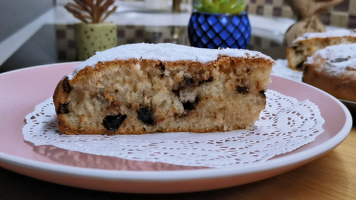 Этот пирог настолько хорош, что можно даже вместо торта гостям к чаю подавать. А готовится он реально на скорую руку. Действий минимум. Все смешали и отправили в духовку. Показываю изумительный и утонченный вариант с черносливом и кусочками шоколада. Все ингредиенты и их количество есть в конце статьи. Как приготовить: Итак, начнем готовить. Вливаем в удобную миску растительное масло, всыпаем в него обычный и ванильный сахар и просто активно перемешиваем венчиком до однородности. После этого вливаем кефир комнатной температуры и снова хорошенько перемешиваем. Отдельно смешиваем муку и разрыхлитель. Затем просеиваем через сито в жидкую смесь и снова все перемешиваем. Теперь начинка. Это чернослив и темный шоколад. И то, и другое режем на небольшие кусочки. Но очень сильно мельчить не нужно. И если чернослив свежий и влажный, можно легко обойтись без замачивания. Все всыпаем в тесто и аккуратно перемешиваем ложкой или лопаточкой. Тесто готово! Уходит на его замешивание вместе с нарезкой