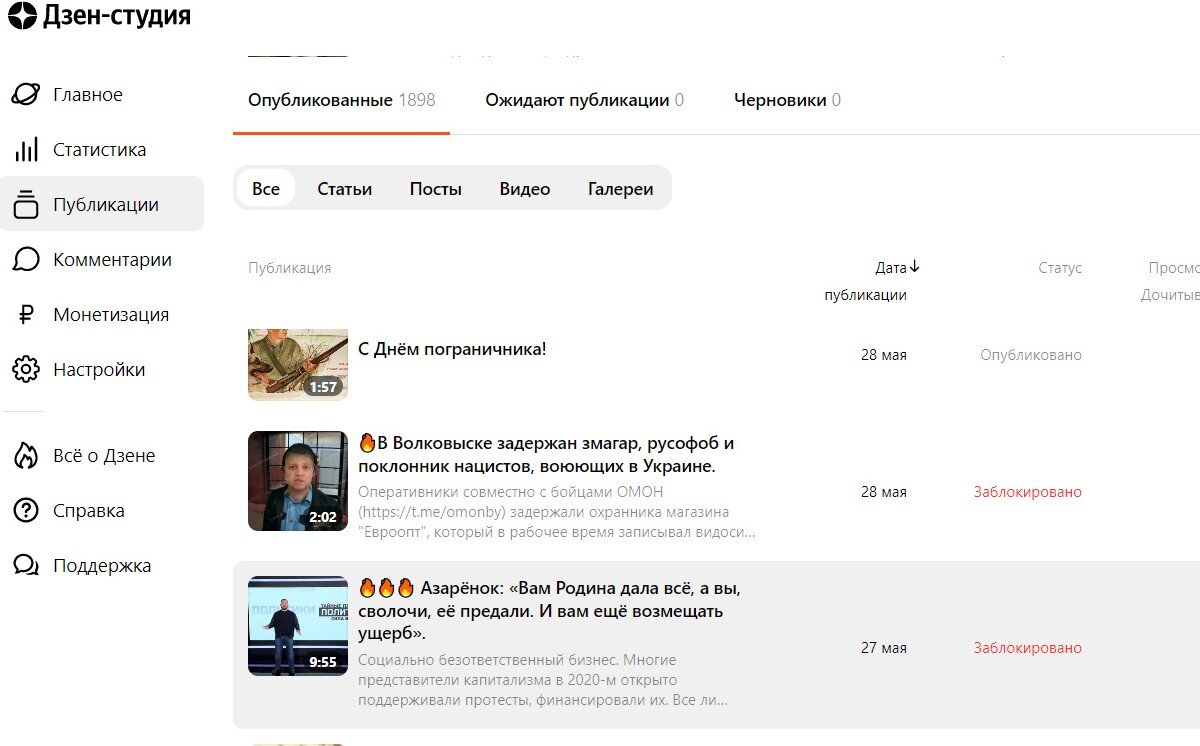 Видимо на ЯНДЕКС ДЗЕН не все в порядке с администраторами, блокируют выступления Азаренка, видео с канала ГУБОП. Пора с администраторами навести порядок!!!