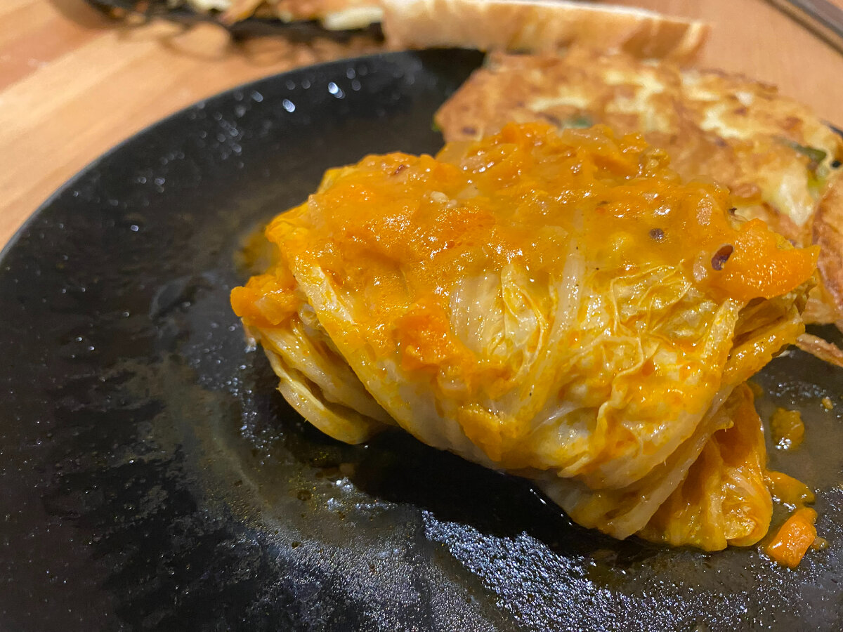 Стыдно признаться, но я до сих пор не умею готовить голубцы из обычной белокочанной капусты, мне кажется дико сложно подготовить листья нужным образом. У пекинской капусты очень нежные листья, поэтому завернуть в нее фарш с рисом очень просто.