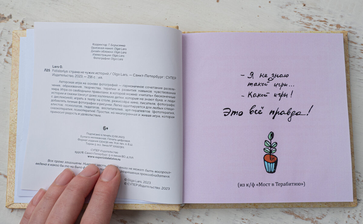Эта книга к игре "Fotistoriya. Страна не чужих историй". Я не могу дать вам игру, но могу дать странички книги. Ваша задача - отобрать примерно 100 снимков из домашнего альбома: природа, животные, предметы; то, что радует, поддерживает, окрыляет! В полиграфическом салоне попросите распечатать их на листах А4 карточками (размер примерно 7х9 см, как визитка). У кого есть возможность - за ламинируйте. Готово! У вас самые крутые фото-карточки! У меня - История! И пусть станет потеплее, посветлее и порадостнее.