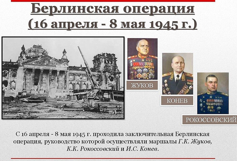 Берлинская стратегическая наступательная операция началась 16 апреля 1945 года. Её целями были разгром основных сил немецких групп армий «Висла» и «Центр», овладение Берлином, выход на реку Эльба и соединение с войсками союзников.