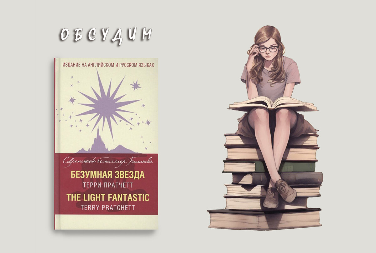 Помнится, здесь обещала, что не буду писать отдельные отзывы на книги Пратчетта, но, прочтя во второй раз "Безумную звезду", я решила иначе. Потому что почему бы и нет. Когда я еще только собиралась начать читать книги про Плоский мир и искала схемы, в каком порядке делать это логичнее всего, я несколько раз натыкалась на информацию, что начинать с цикла про Ринсвинда плохая идея. Потому что мир еще сырой, ведь это одни из первых книг по вселенной, да и, мол, Ринсвинд не самый интересный персонаж сэра Терри. Но, как говорится, послушай умных людей и сделай наоборот. Я плюнула на предупреждения и начала именно с цикла о волшебниках. И... до сих пор считаю его отличным. Конечно, при первом прочтении это было не так заметно, сейчас, после книг других циклов, я ощутила, насколько Плоский мир в этой книге еще зарождающийся. Но от этого история не становится менее интересной, просто было здорово это подметить. Внезапно оказалось, что после детективной "Стражи" (в которой вообще поднимает