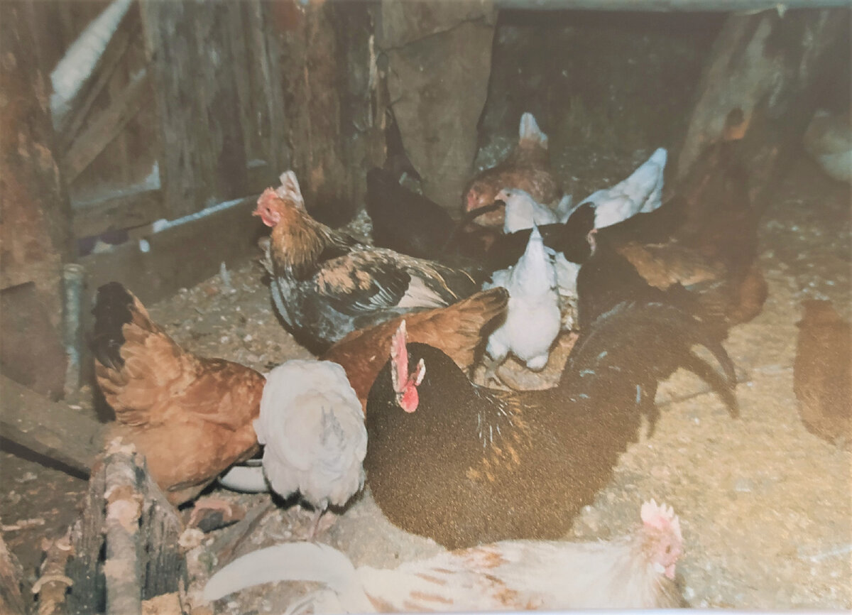 29 мая 2023 года Здравствуйте друзья! Когда мы переехали в деревню в уже далёком 1997 году, страшно сказать, в прошлом тысячелетии, сразу занялись и огородом, и домом, но мне хотелось завести настоящее хозяйство, чтобы скотина была. Ну и завели. Многие не верили, что справимся, всё-таки люди мы городские, больше привыкли "карандашик об карандашик стучать", чем за скотиной ухаживать, но всё получилось. Смартфонов тогда ещё не было, но у меня сохранились старые фотографии, сделанные при помощи "мыльницы" на бумаге, я не долго думая, перефотографировала их на телефон, как всегда, на кухонном столе, так что не судите строго. Дальше будет мало слов и много этих сомнительного качества фото, просто всех, кто там запечатлён уже с нами нет, кроме меня, конечно. Сначала были куры. Обычные деревенской породы, росли, как трава растет. Один раз в день в день зерна насыпать - вот и весь уход. Смотришь, уже откуда-то курица цыплят ведет. Потом коза нарисовалась. Ну и пришло время коров заводить. Это
