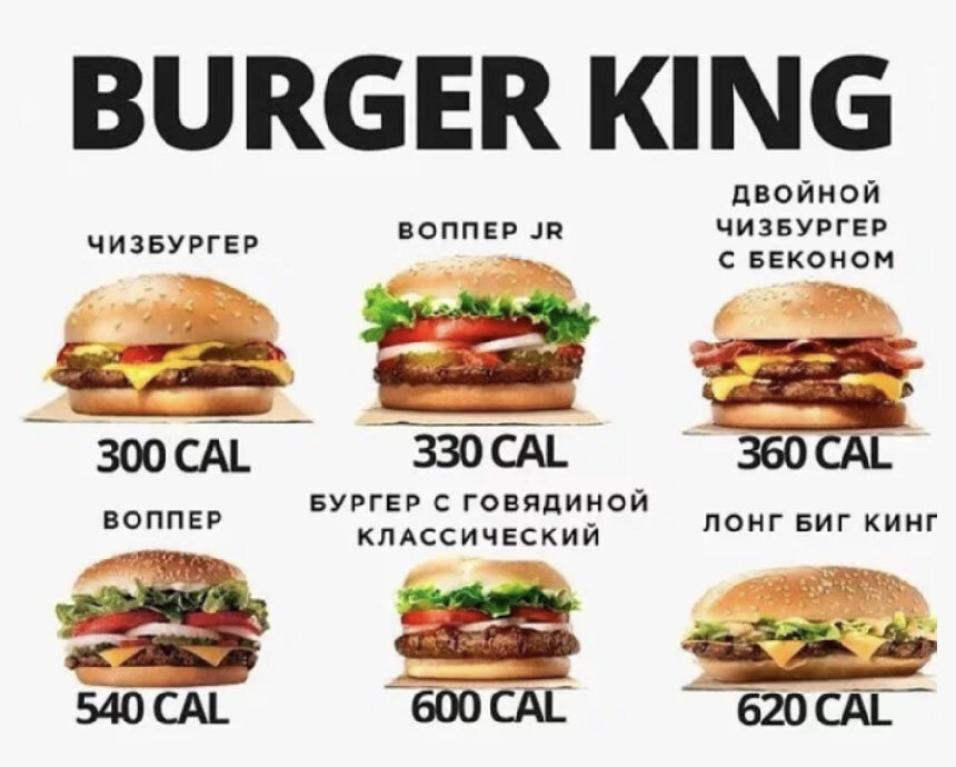Калорийность фастфуда