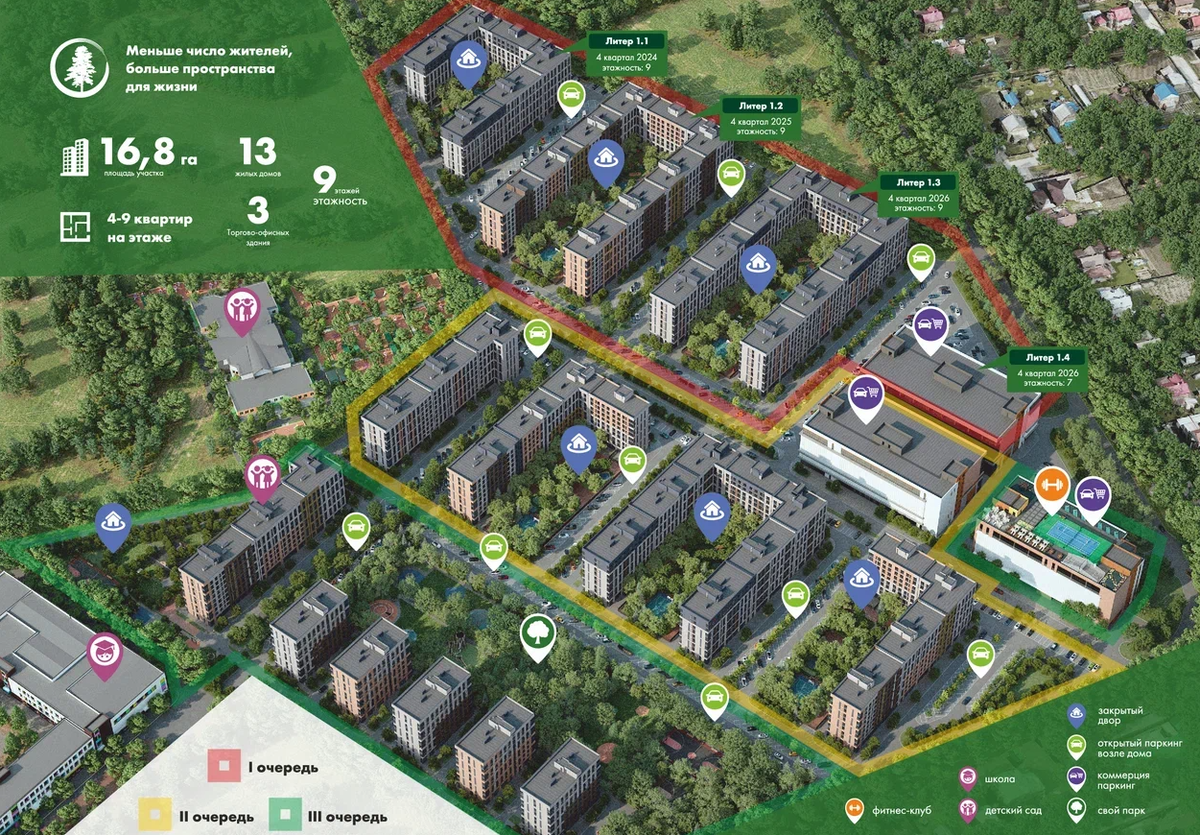 1. В итоговом исполнении это 13 девятиэтажных литеров.