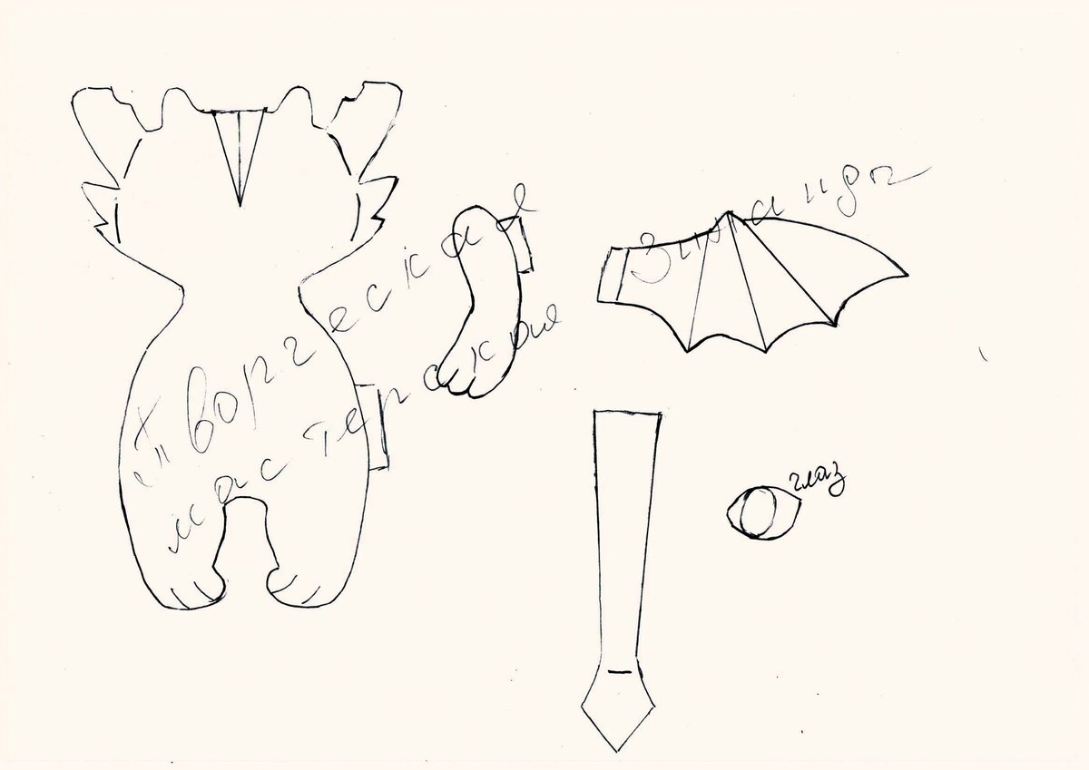 15.Кофейный раствор: одну чайную ложку кофе, я пользуюсь Nescafé, заливаю кипятком воды, примерно 5-6 столовых ложек, даю остыть, добавляю ванилин и где-то половинку чайной ложки клея ПВА. Все тщательно перемешиваю. Тонирую кисточкой. Выкройка дана в формате А4. Её достаточно распечатать или перерисовать с компьютера. Вместе с выкройкой дан трафарет глаза. Рисунок вырежьте, приложите уже к готовой игрушке. Обведите карандашом с одной стороны и зеркально с другой стороны. Ткань бязь складываем пополам и обводим выкройку тельца, лапок и хвоста карандашом. Скалываем булавками и, не