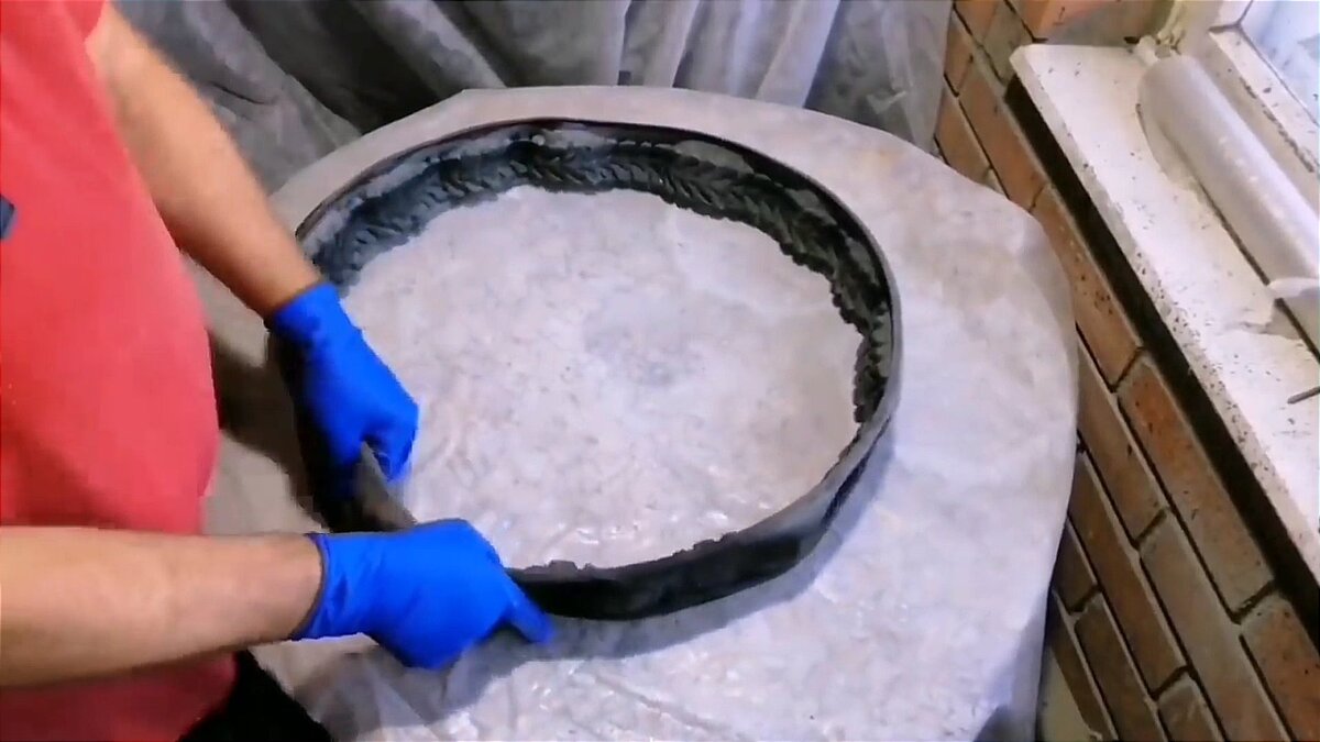 Через два дня достаем изделие из покрышки,поддевая шпателем по краям.