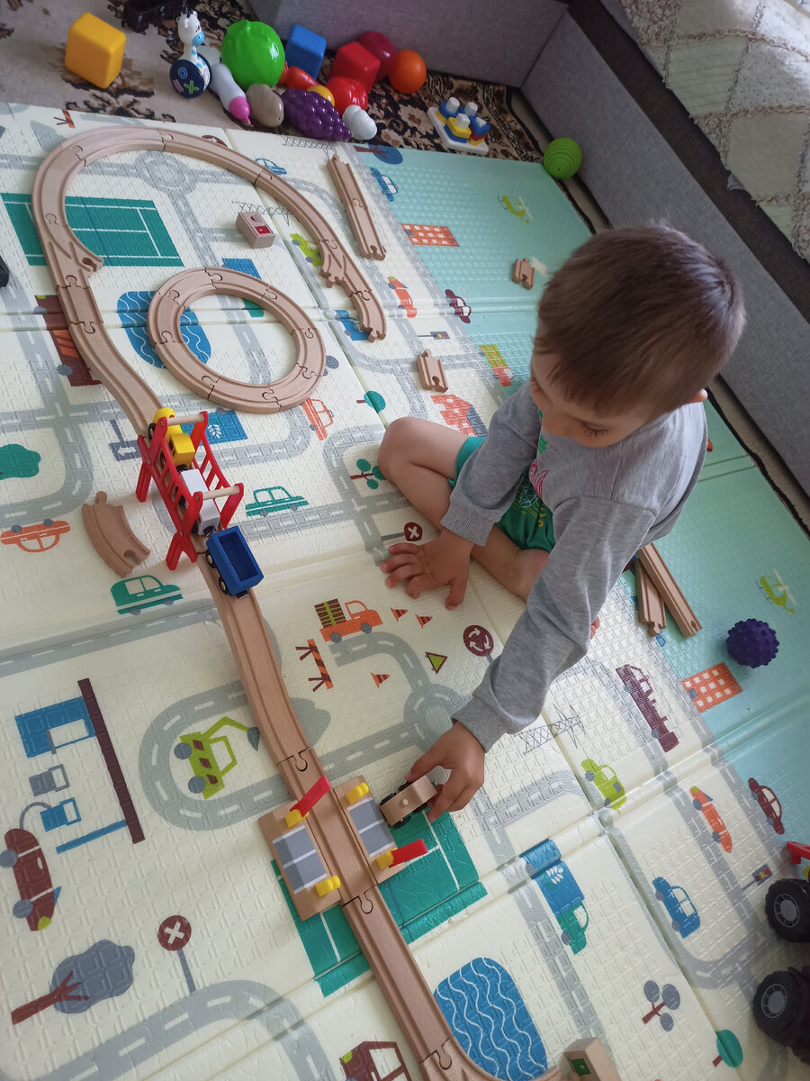 Идея для этой статьи уже давно жила в моём сознании, но только совсем недавно смогла её окончательно доработать. После 3-х лет энтузиазм сына к занятиям и выполнению разных заданий вместе с мамой начал потихоньку уменьшаться, но зато всё больше набирала обороты самостоятельная деятельность. Я старалась её поощрять и стимулировать сына к созданию собственных сюжетов для игр. Помимо этого, я начала плавно внедрять математику и чтение в игровой форме. Деревянная железная дорога Название смешное, всегда веселило. Всем понятно, что эта игра помогает развивать воображение и фантазию в сюжетно-ролевых играх, логику и мелкую моторику. Поначалу конечно собирать дорогу Ване помогал папа, потом он начал уже сам прокладывать свои маршруты. Деревянная пожарная машина - конструктор Вот это вещь, очень понравилась! Сын с ней играет с 3-х лет, и до сих пор не надоела. Многофункциональна, развивает моторику, воображение, логику. Сын, помимо оригинальной модели машины, конструирует свои собстве
