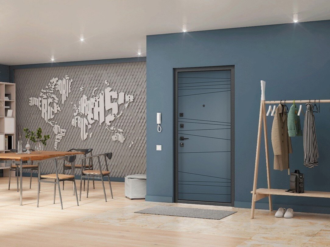 - Сочетается в интерьере. Вам больше не нужно думать, как и с чем сочетать отделку двери в интерьере (пол, плинтус, мебель и т.д.). Входная дверь уже подходит под стены.