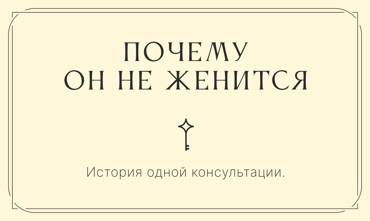 Дано: молодая красивая женщина, самодостаточная уникальная личность. За плечами два брака. Двое самостоятельных детей. Пятый год живет в отношениях с мужчиной, который «очень хочет на ней жениться, но не может» по крайне «весомой» причине. С разрешения клиентки озвучиваю этот повод: взял кредит для брата на себя, но тот отказался его выплачивать. В итоге мужчина имеет долговые обязательства перед банком (тоже не платит) и официально жениться не может.