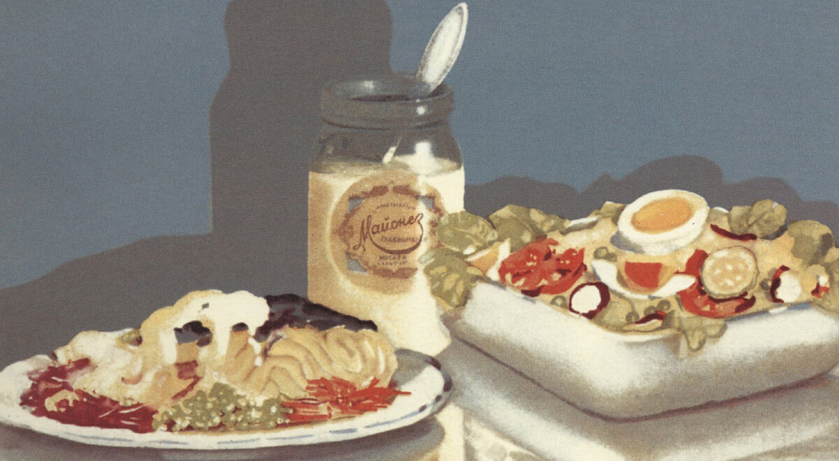Видимо, все дело в генетическо-гастрономической памяти: уважение к майонезу нашим предкам прививали еще в сталинские времена. В 1936 году народный комиссар пищевой промышленности СССР Анастас Микоян посетил с дружественным визитом Соединенные Штаты Америки, откуда привез на родину множество кулинарных идей и технологий производства продуктов: от бургеров и мороженого до тушенки и французского соуса под названием майонез. В том же году на небольшой производственной площадке Московского жирового комбината в Шелепихе была выпущена первая партия майонеза. Кстати, строился этот завод в начале 1930-х годов под производство маргарина, но уже в 1970-е здесь было сконцентрировано все московское производство майонеза (около 28 тысяч тонн в год).