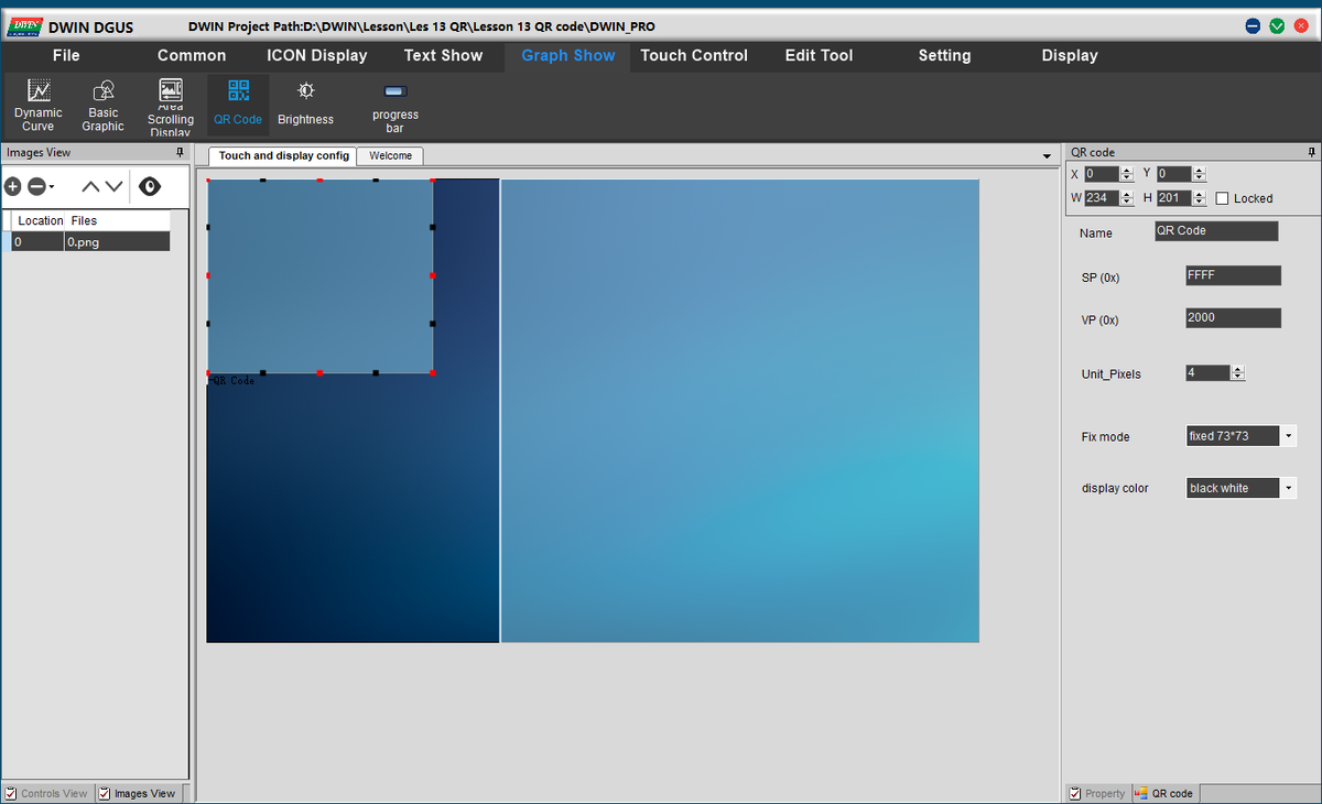 Отображение QR кода встроенная функция в DGUS. Для формирования необходимо выбрать соответствующий элемент в отображения. VP - адрес в памяти с которого начинается заполняться память с данными в QR коде. Важно знать, в конце строки данных QR клжа необходимо размещать терминатор FFFF. SP - адрес описания, позволяет изменять место расположения элемента, размер пикселя QR кода, разрешение увеличивать QR при увеличении данных и изменять цвет. Команды для заполнения QR кода не отличаются от команд записи любой другой информации. Составим команду на запись в QR код ссыли на канал DZEN. 5A A5 19 82 20 00 68 74 74 70 73 3A 2F 2F 64 7A 65 6E 2E 72 75 2F 64 77 69 6E FF FF В результате получается отображение двух QR кодов, слева код фиксированного размера 73х73 точки, справа масштабируемый код. При сканировании получаем корректный результат в во всех случаях. При перезаписи данных в QR код необходимо помнить о терминаторе в конце строки, обязательно должно быть FFFF, иначе останутся артефакты