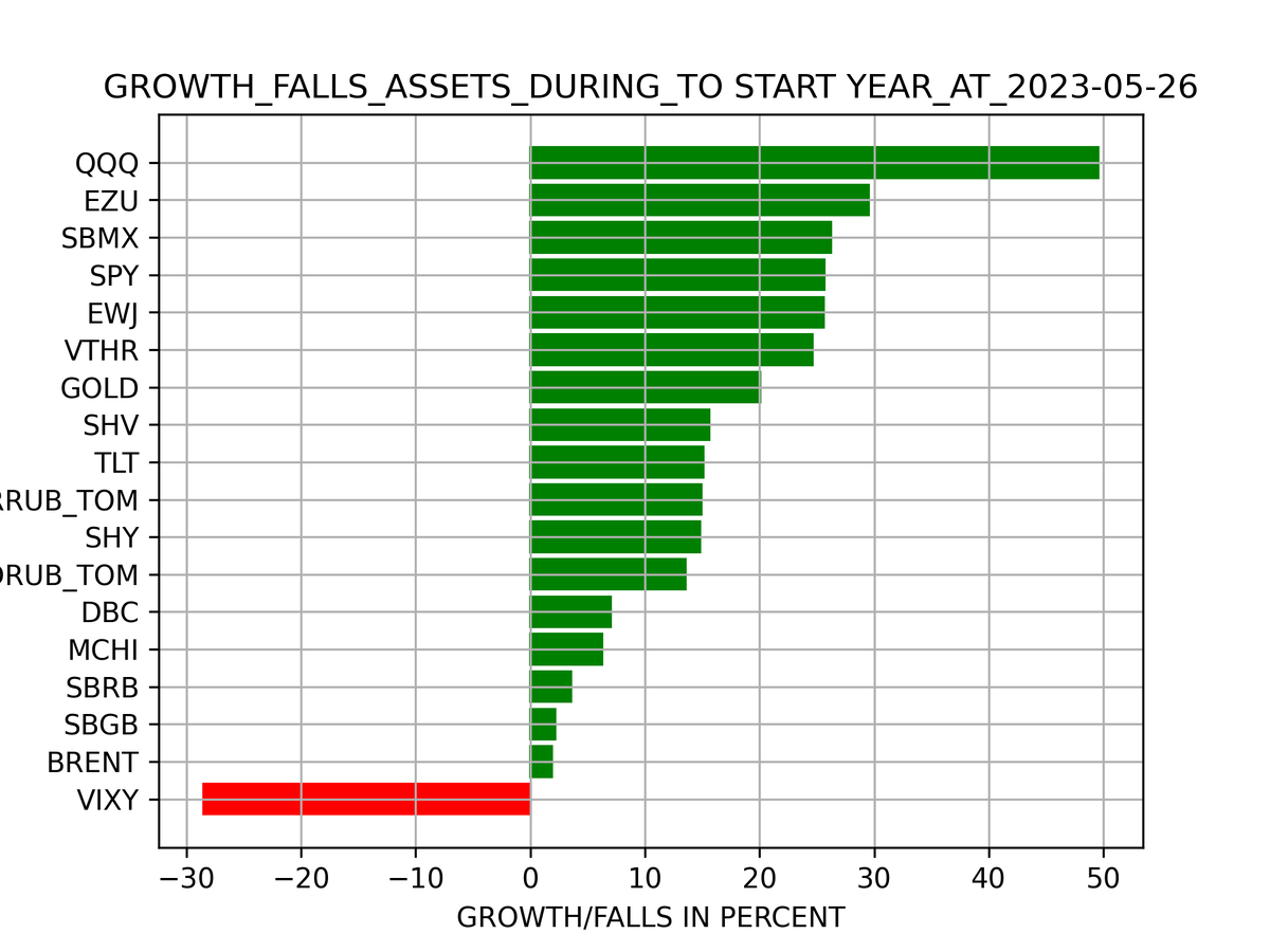 Статистика. Доходность различных активов по состоянию на 26.05.2023 в RUR Статистика. Доходность различных активов по состоянию на 26.05.2023 в USD Доходность посчитана на срок: