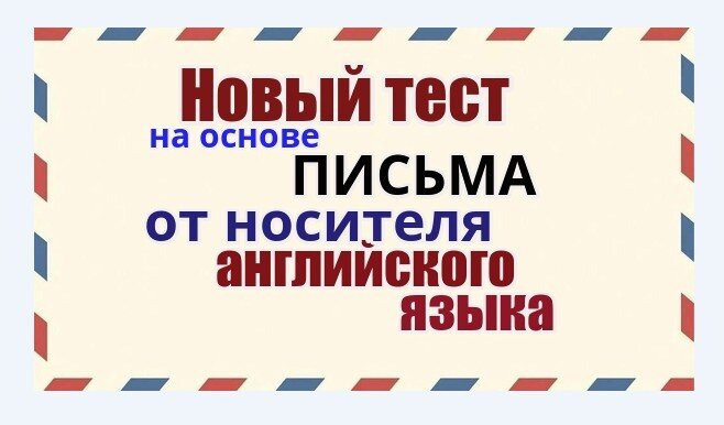 Если вам нравятся мои тесты, составленные по письмам от моего друга из далеких стран, ставьте сразу "лайк". Ведь я так мало прошу! Сегодня продолжила серию тестов по письмам от носителя английского языка. Конечно, это и для развлечения, и для обучения.... Просто выберите правильный вариант ответа. ТЕСТ по английскому "Письма издалека, боже как странно, как нелепо" Очень прошу проверить правильные ответы и сделать работу над ошибками! Не забывайте подписываться на канал по изучению английского "Английский с Натали" в неформальной обстановке. Тут собрались творческие люди, но и правила для нас очень важны, не правда ли? Больше тестов по этой теме.. Наверное, я сделаю отдельную подборку на канале