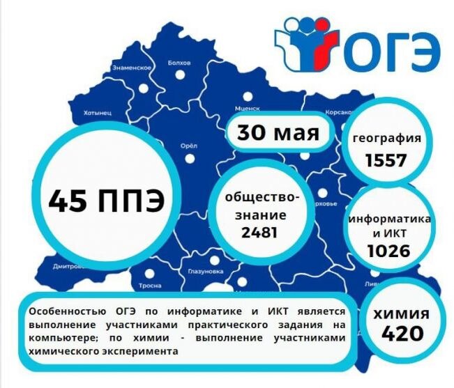 ОГЭ проходят сразу в 45 пунктах проведения экзаменов, и в них участвует 5 484 подростков. Обществознание выбрал 2481 участник, информатику и ИКТ – 1026 участников, географию – 1557 участников, химию – 420 участников.