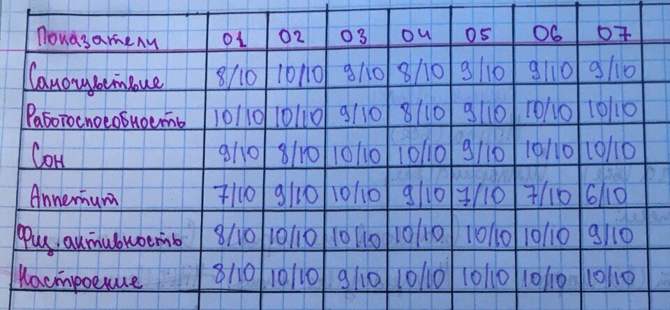 Всем доброго! Как я и обещала в первой части "эксперимента" интервального голодания, что подготовлю вторую часть, где я напишу об общих результатах и стоит ли это делать? Сверху я прикрепила фото в виде таблицы о том, как проходило мое самочувствие, физ. состояние и так далее. И-так, начнем-с.