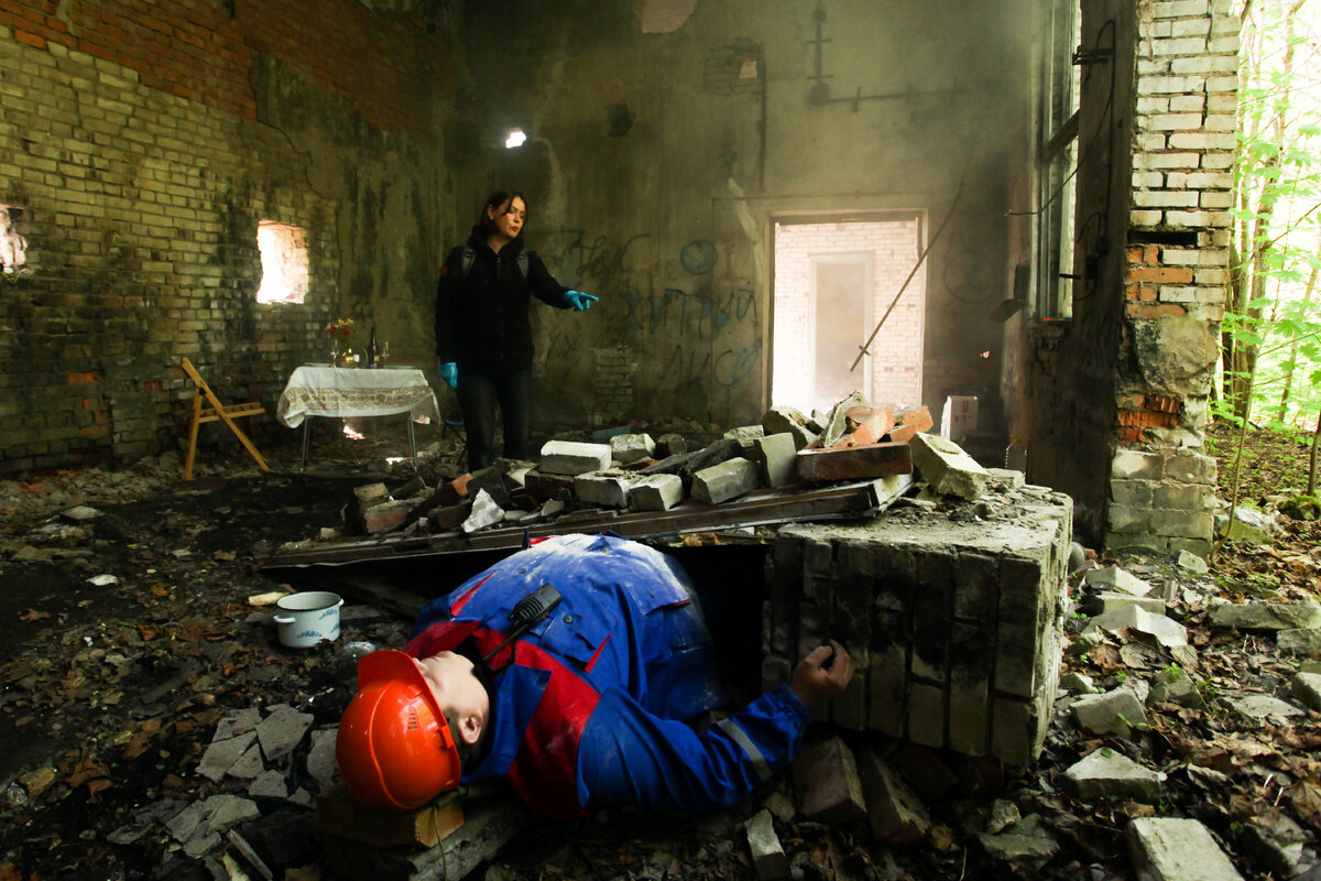 Раннее утро под Петербургом радует солнышком, заливисто поют птички, по голубому небу неспешно плывут облака – идиллическая картинка. Нотку диссонанса в эту сельскую безмятежность вносит вереница машин, одна за другой паркующихся вдоль дороги, и выходящие из них люди в оранжевом. Они привычно регистрируются в штабе, перебирают снаряжение и что-то негромко обсуждают между собой. Краткое вступительное слово – и прямо на месте сформированные команды отправляются по этапам. Для них на этом спокойное утро заканчивается и начинается Большой тренировочный день по первой помощи ДПСО «ЛизаАлерт». На одной площадке произошёл взрыв газового баллона в котельной, рабочего завалило кирпичами. Помещение в дыму, по нему мечется девушка – осколки стекла воткнулись в лицо и угрожающе поблёскивают. Она плачет и пытается вытащить мужчину из-под завала. Поисковикам предстоит оперативно оценить обстановку – но в первую очередь обеспечить собственную безопасность. Иначе они не смогут оказать помощь тем, кому