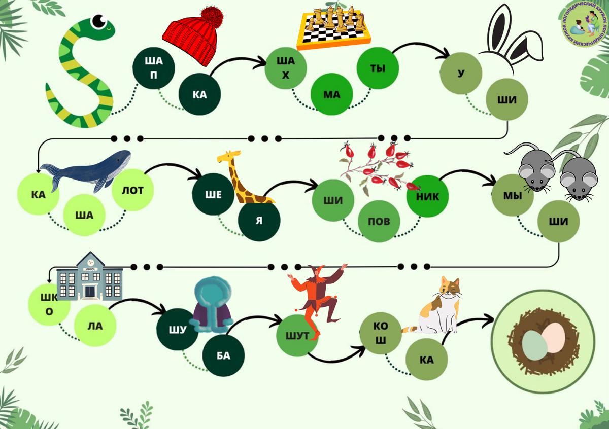 Помогаем добраться змейке до гнезда! Все слова разделены на слоги, чтобы автоматизация проходила проще. Инструкция: Давай поможем добраться змейке до гнезда, для этого будем называть все слова со звуком Ш правильно! #логопед #логопедические игры #занятия с детьми #развитие речи #дефектолог #логопедмосква #игры для детей #речевое развитие