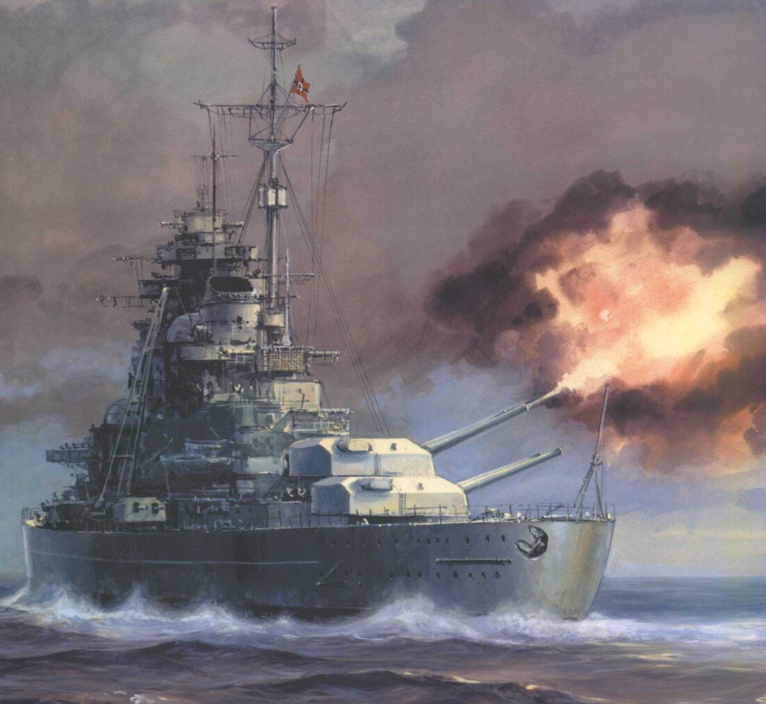 Линкор немецкого военного флота, один из самых известных кораблей Второй мировой войны. Назван в честь первого канцлера Германской империи Отто фон Бисмарка. Во время своего первого и единственного похода в мае 1941 года потопил в Датском проливе британский линейный крейсер «Худ». Начавшаяся после этого охота британского флота за «Бисмарком» спустя трое суток закончилась его пот
