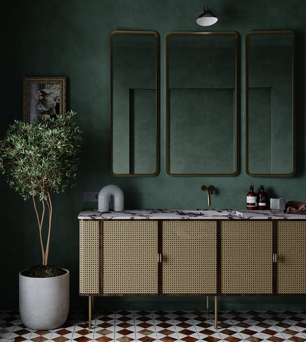 - Глянцевые поверхности создают ощущение дешевизны, а также в них все отражается и создается дополнительный визуальный шум. Матовые поверхности выглядят дороже и роскошнее.