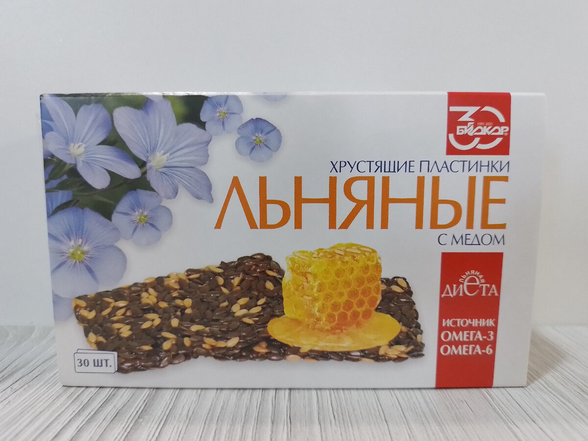 Эти семена продаются во всевозможных видах. Я попробовала в виде хрустящих пластинок с медом. В составе семена коричневого и белого льна, натуральный мед и морская соль. Это источник жирных кислот Омега-3 и Омега-6.