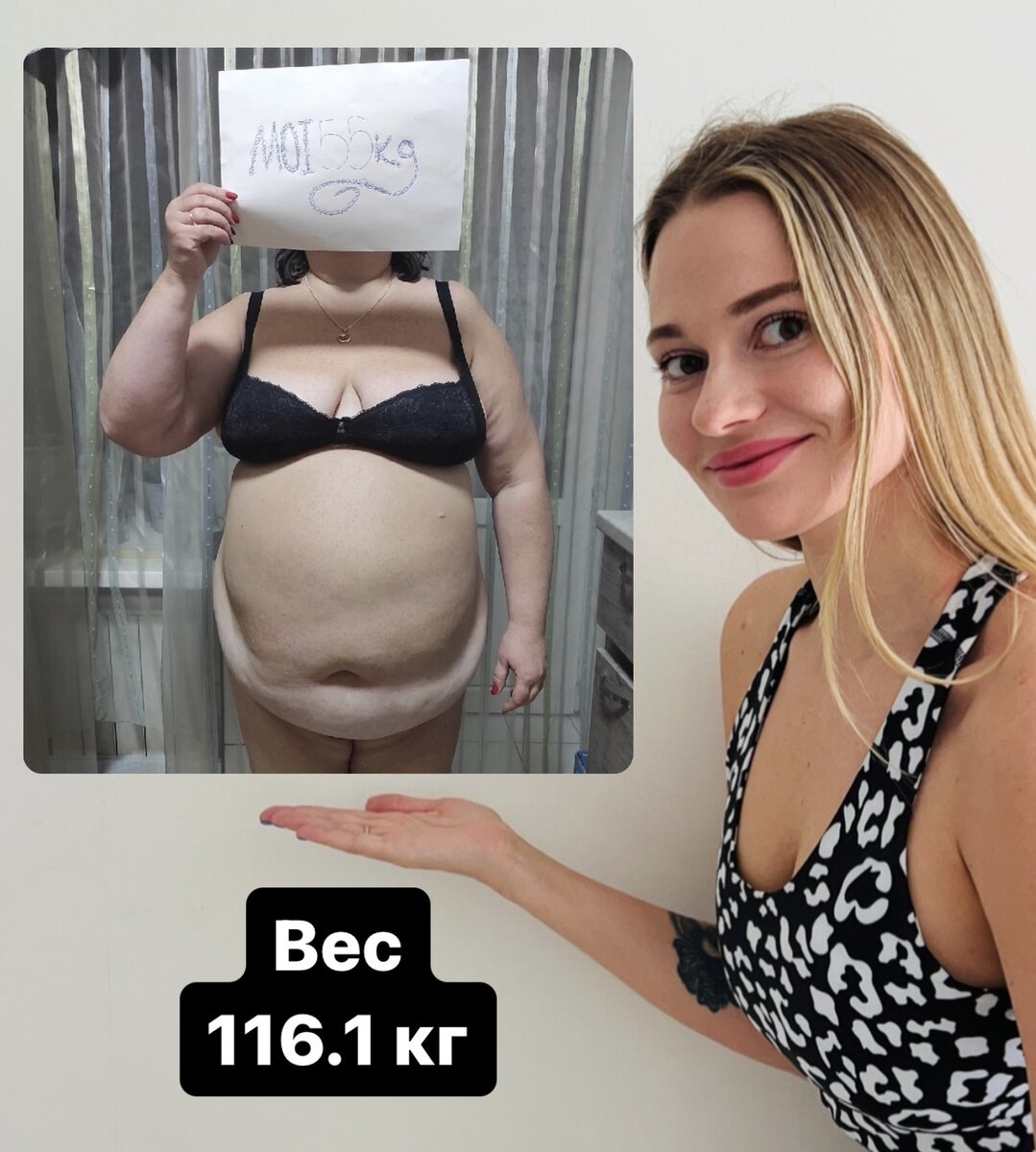 Пол года назад ко мне обратилась женщина. На тот момент её вес закрепился на отметке 116 кг. Сбросить жир на животе не получалось уже много лет. Когда вопрос встаёт о похудении живота, я всегда предупреждаю, что это долгий процесс. Запасайтесь терпением. К сожалению, мы не худеем локально в проблемных зонах, мы худеем сверху вниз. Наши проблемные зоны худеют в самую последнюю очередь, потому что там у нас больше всего жировых клеток. Сразу скажу, что для борьбы с животом вам не нужно качать пресс по 100 раз, бегать в пищевой плёнке и крутить хулахуп, это бред! Достаточно изменить ПИТАНИЕ!!! —————————————————————— Цитата: «у меня перестало подниматься давление, стала спать без храпа, пропадает отдышка при подъеме, стала более подвижная, даже завязывание шнурков теперь в радость» Для этой женщины похудение было важно не ради эстетики, а ради здоровья! Вес до: 116.1 кг Вес после: 95.8 кг Результат: -20.3 за 5 месяцев Вместе мы скинули не только килограммы, но и избавились от вре