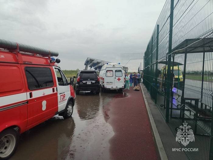 Губернатор Голубев объяснил обрушение трибуны «порывом шквалистого ветра». Глава Ростовской области Василий Голубев прокомментировал трагический инцидент с обрушением трибуны с болельщиками на Гребном канале Ростова. Комментарий появился на страничке главы региона в Telegram. «Произошло ЧП на Гребном канале. Порывом шквалистого ветра перевернуло сборные конструкции зрительских трибун во время футбольного матча», — сообщил Голубев. На место происшествия выехали руководители и специалисты областных ведомств, работают спасатели, медики, правоохранители. Пострадавшим оказывают необходимую помощь. «На данный момент известно о 15 пострадавших, в том числе 5 взрослых и 10 детях. К сожалению, одна женщина погибла. Еще одна женщина и двое детей — в тяжелом состоянии», — сообщил Голубев. По факту проводится расследование, добавил губернатор. На стадионе проходили детские соревнования по футболу. Играли команды из Ростова и Батайска. На трибунах находилось порядка 30 человек. Почему, несмотря на